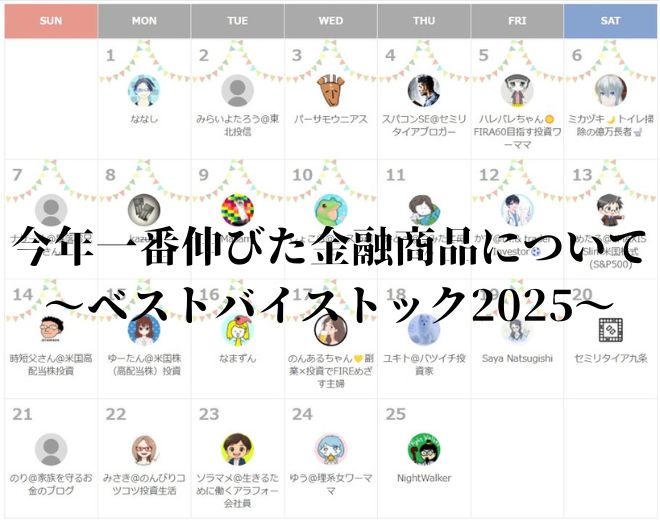毎年12月の1日から25日まで投資ブロガーの皆さんが今年のベストバイ金融商品を自身のブログで発表されています。
