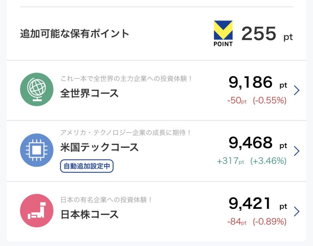 Vポイント運用では運用対象に3つのコースがあります。