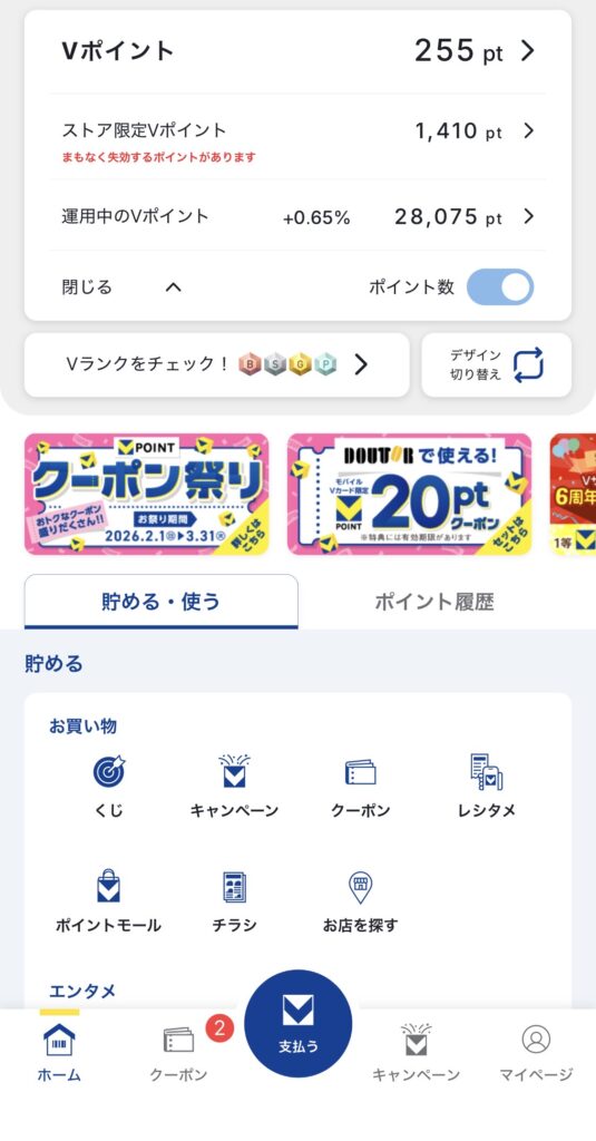 こちらが私の現在のVポイントアプリの画面です。