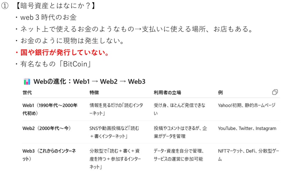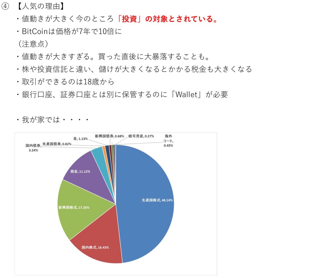 数か月前に息子が「暗号資産について知りたい」とリクエストがあり今回実施しました。