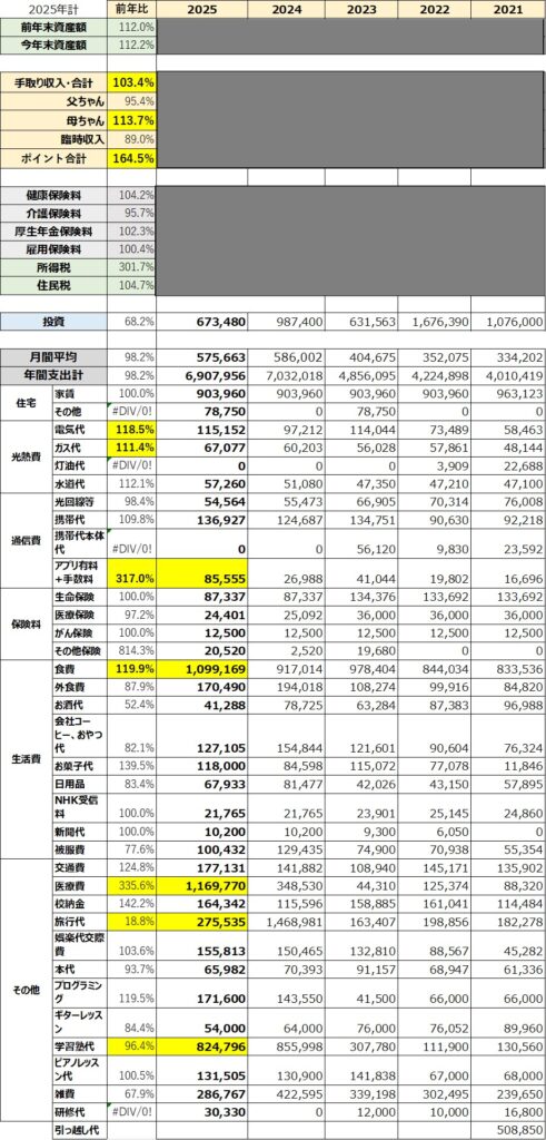 私「さて2025年が締まったから次は年間収支を見ていこう。」
